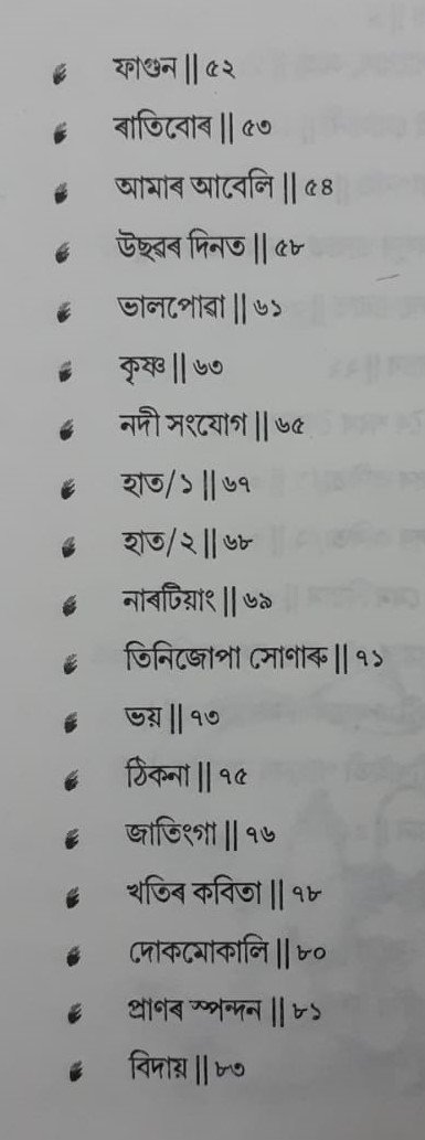 কবিৰ মনোৰম কথনভংগীয়ে পাঠকৰ ভাবনাক জোকাৰি যায়। কবিতাসমূহৰ মাজেৰে প্ৰস্ফুটিত প্ৰেমৰ সৰলতায়ো পাঠকক মুগ্ধ কৰে। তদুপৰি পঢ়়ুৱৈৰ চেতনাত মৃদু লহৰ তুলিব পৰাকৈ কবিতাসমূহত অন্তৰ্নিহিত ভাবনাও বুদ্ধিদীপ্ত আৰু ব্যঞ্জনাময়।