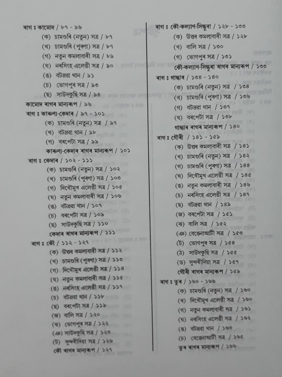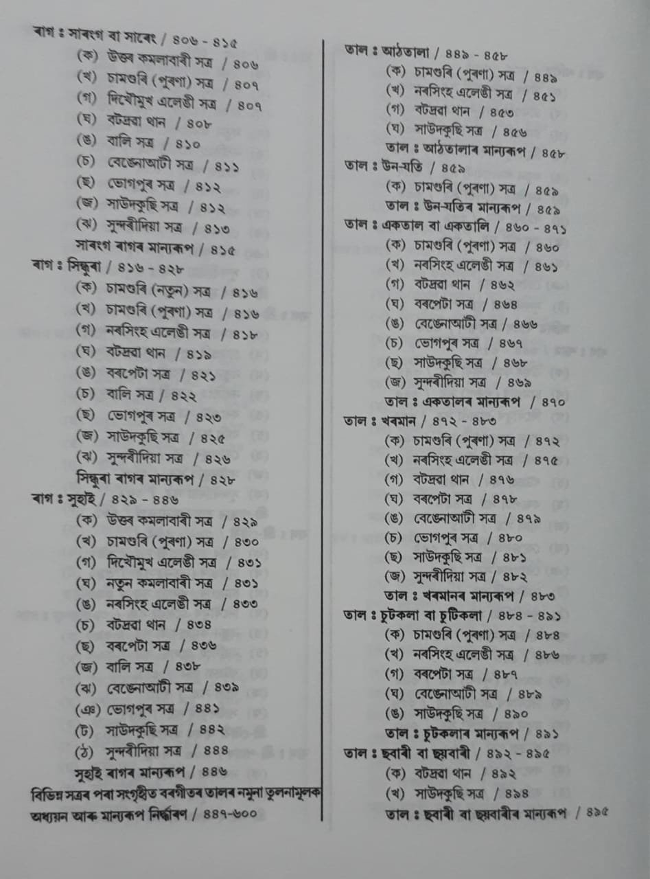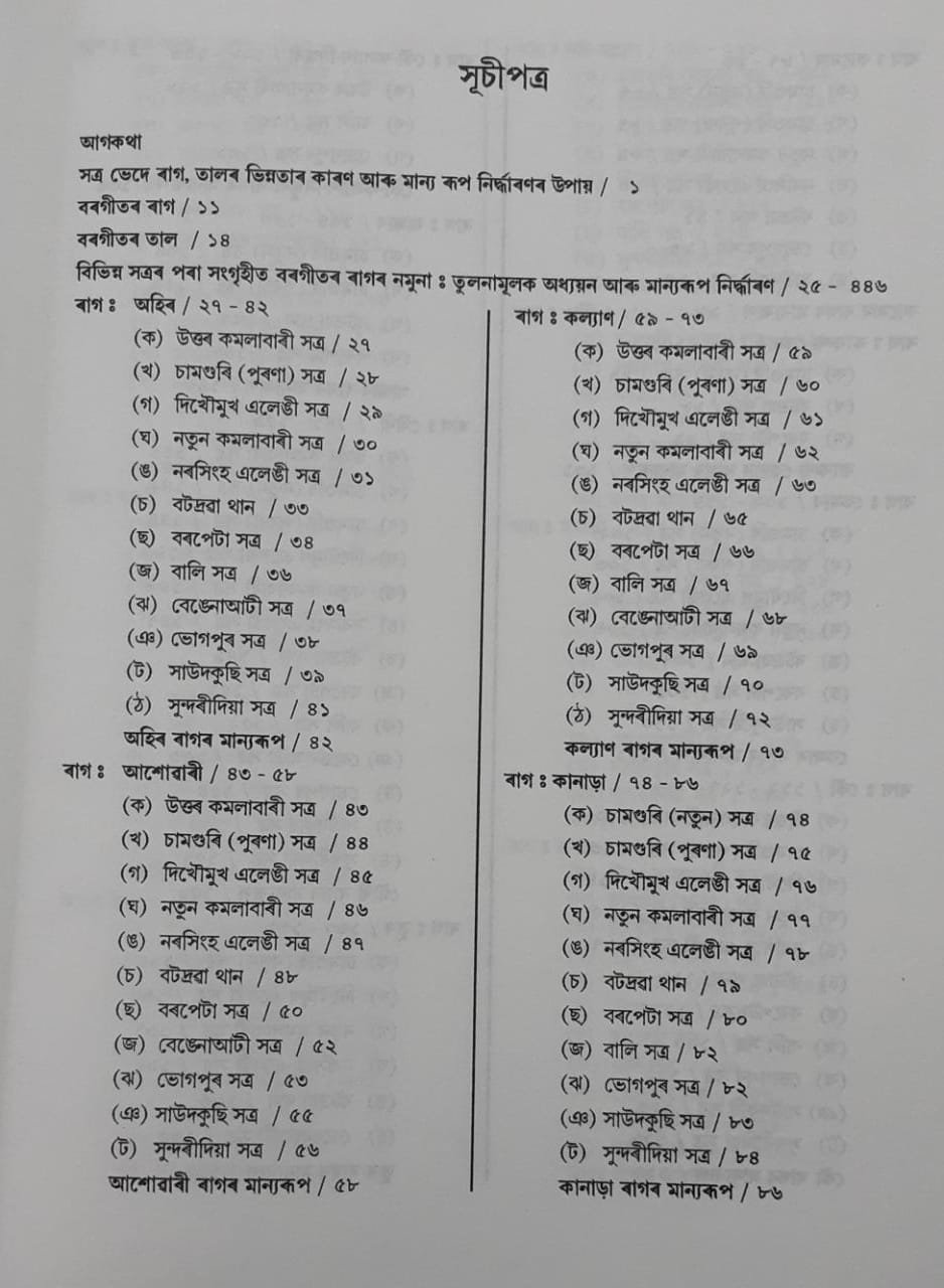 MODIFIED BY : DR. PABITRAPRAN GOSWAMI, WHICH SYSTEMATISES 36 RAGS AND 22 TALS OF BARGIT AFTER COMPARATIVE ANALYSIS OF THE NOTATION OF THE SPECIMENS THERE OF COLLECTED FROM 13 DIFFERENT SATRAS REPRESENTING THE UPPER, THE LAWER AND THE MIDDLE PART OF ASSAM