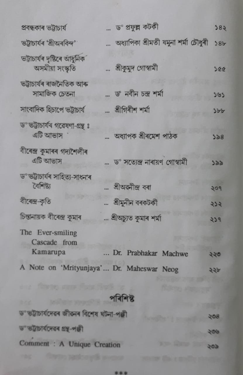 BIRENDRA BHATTACHARYAR SAHITYA KRITI : A COLLECTION OF CRITICAL ESSAYS ON THE LIFE AND LITERARY ACTIVITIES OF DR. BIRENDRA KUMAR BHATTACHARYA THE BHARATIYA JNANPITH AWARD WINNER
