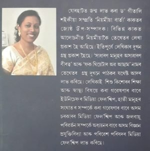 ড০ গীতালী শইকীয়াৰ কোনো কোনোটো প্ৰবন্ধৰ আৰম্ভণি আকস্মিক, আৰু কোনোটোৰ পোনপটীয়া। সেইদৰে বিন্যাসৰীতিও কোনোটোৰ বিশ্লেষণাত্মক আৰু কোনো কোনোটোৰ বৰ্ণনামূলক। কল্পনা আৰু আৱেগক আয়ত্তাধীন কৰি সুসংবদ্ধভাৱে লিখা হেতুকেই কোনোটো প্ৰবন্ধই বিক্ষিপ্ত হোৱা নাই।…