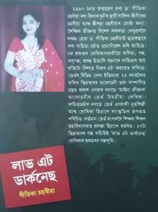 “লাভ এট ডাৰ্কনেছ” –ড০ গীতিকা চহৰীয়াৰ ২৭ টা গল্পৰ এই সংকলনটি প্ৰকাশ কৰি উলিয়াইছে পূৰ্বায়ণ প্ৰকাশনে। গল্পসমূহৰ বিষয়বস্তু, ভাষা, কথন-শৈলী আদিৰ বিষয়ে হৰেন্দ্ৰনাথ বৰঠাকুৰে কৈছে —