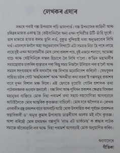 “গল্প-কথন বা পৰিৱেশনৰ সাৰল্যৰ বাবে স্বাভাৱিকভাৱেই গল্পবোৰ সকলো স্তৰৰ পঢ়ুৱৈৰ বাবে যে গ্ৰহণীয় বা সুখপাঠ্য হৈ পৰিছে তাত সন্দেহ নাই। আক্ষৰিক অৰ্থতে চুটি ‘চুটিগল্প’কেইটা গল্পকাৰৰ নিজস্ব এক কথনভংগীৰে বিবৃত হৈছে। আনহাতে গল্পকেইটাৰ প্ৰেক্ষাপট বা আধাৰো প্ৰায় বৈচিত্ৰ্যহীন হোৱাৰ বাবে এখন উপন্যাস পঢ়াৰ দৰেই একপ্ৰকাৰ আমেজ পাব।