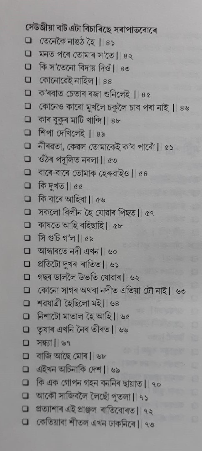 পূৰ্বায়ণ প্ৰকাশনে প্ৰকাশ কৰি উলিওৱা এই কবিতা সমগ্ৰত কবিৰ ২০১১ চনৰ পূৰ্বৰ কবিতাসমূহ অন্তৰ্ভুক্ত কৰা হৈছে। গ্ৰন্থখনৰ আৰম্ভণিৰ দুআষাৰত ড০ হীৰেন গোহাঁয়ে কৈছে—