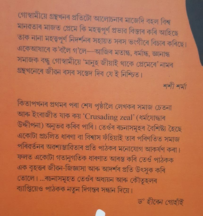 MANUH JIYAI THAKE PREMERE : A COLLECTION OF ARTICLES IN ASSAMESE BY MOINA GOSWAMI